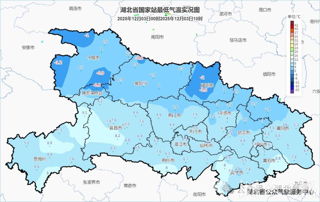 1 湖北日报讯(记者曾莉)12月2日以来,湖北省大部分地区受冷空气影响,引发大风冷空气,局地风速已达9级。但气温即将再度回升。 5日开始,北海道多地预计多云转晴,最高气温预计将大幅上升。但由于辐射降温,县内最低气温下降至0-5℃。昼夜温差很大。市民应尽早出门,晚归时注意保暖。第三天,太阳出来了,但寒冷还没有结束。十堰、襄阳、随州、神农架等地部分观测站,早晨最低气温由0℃降至-2℃。下午3:00,大部分地区气温为10至15°C。东部和南部气温继续小幅下降。与此同时,偏北风4~6级风力继续吹中东部地区。 3日下午至4日,预计全州多云,西部有短时降雨,高海拔地区有雨夹雪。受此冷锋影响,大部分地区最高气温将降至最低点并保持在 9 至 12 摄氏度之间。 5日开始,北海道大部分地区预计多云转晴,最高气温将大幅上升。但由于辐射降温,北海道最低气温从0摄氏度下降到5摄氏度,昼夜温差变大。市民应尽早出门,晚归时注意保暖。相关文章