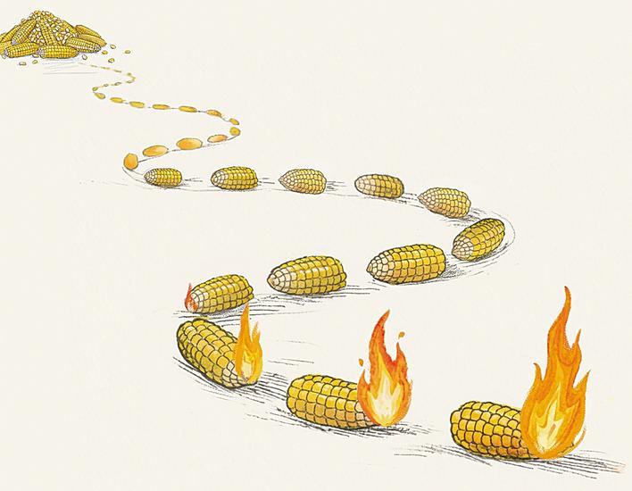 漫画/杜宇辉 近日,山东省烟台市一家以玉米为燃料的烧烤店视频引发热议。该店解释称,使用的玉米是陈粮或外购粮,其初衷是为了增加农民收入,但用粮食作为燃料仍然违背了全社会的节约粮食共识。我国玉米资源有明确的利用方向,主要用于饲料生产和满足人民生活需要。农业部已明确表示不鼓励此类行为。企业探索商业模式并没有错,但在最终目标实现粮食安全之前,任何创新都必须停止。 (张双双撰)相关产品