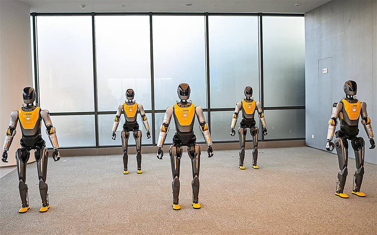 12月12日,伴随着古琴的节奏,来自湖北省仿人机器人创新中心的五台仿人机器人伸出双臂,轻轻打起太极拳,震撼全场。整个过程被客人用视频记录了下来。这些人形机器人不仅可以练习太极拳,还可以为大家表演舞蹈表演。 (湖北日报记者 朱西勇 摄)12月12日,从湖北省人形机器人创新中心接收的5台人形机器人舒展双臂,随着古琴的节奏轻轻打起太极拳。相关文章